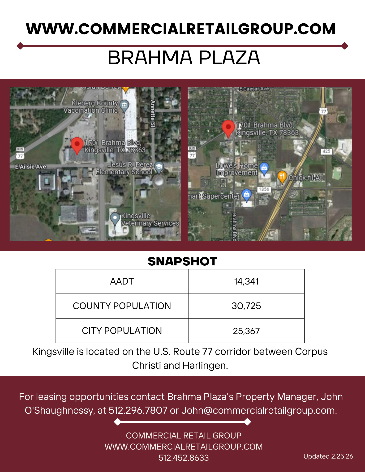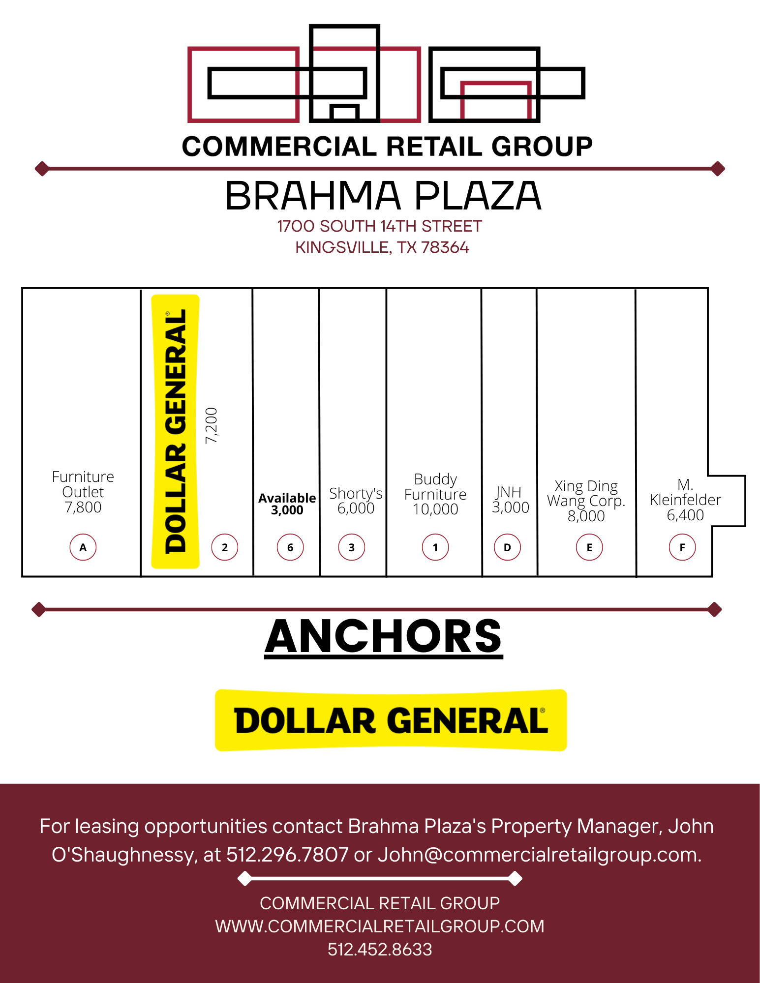 For more information on Brahma Plaza email John O'Shaughnessy, Property Manager at John@commercialretailgroup.com or 512-296-7807!