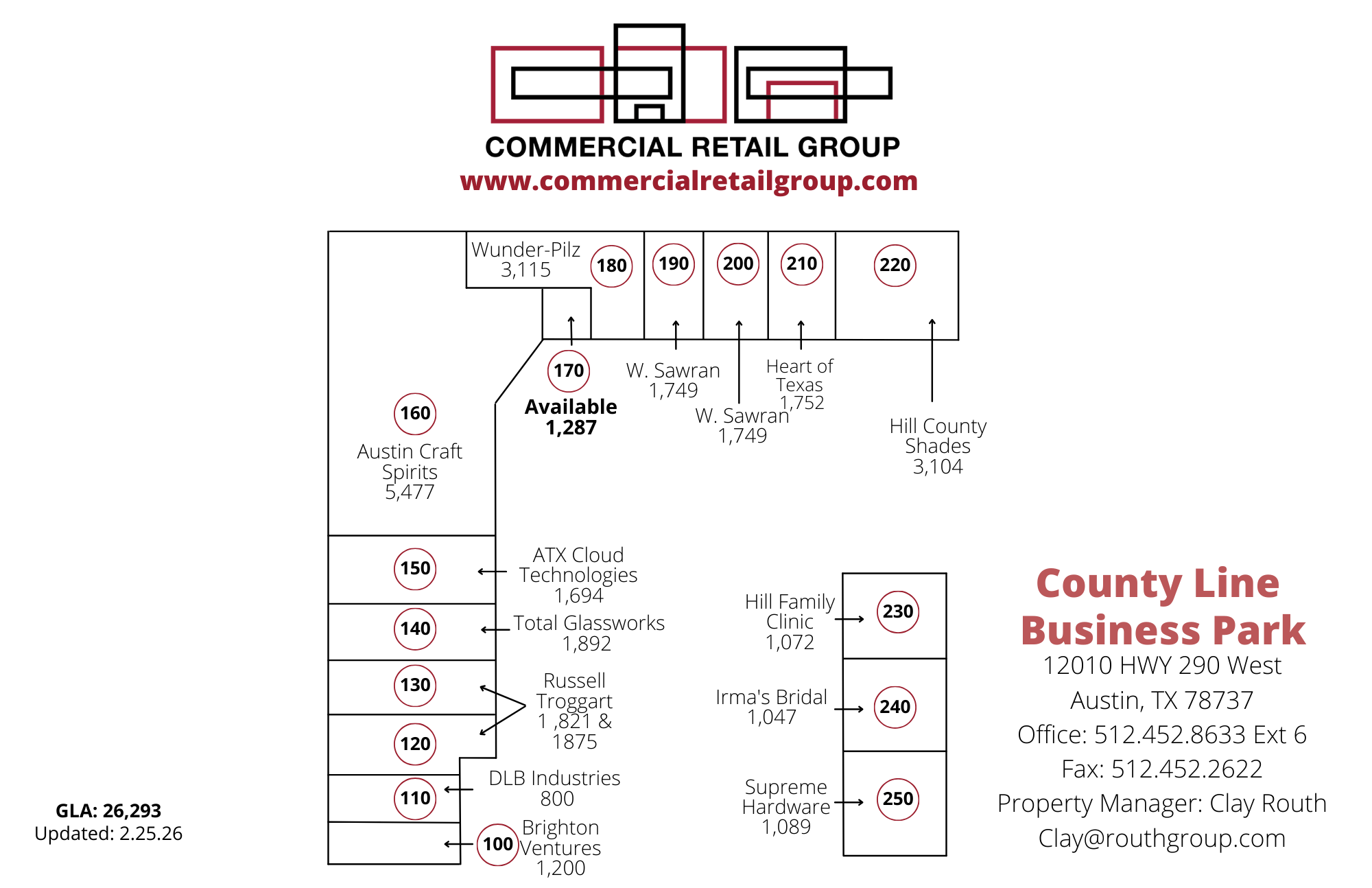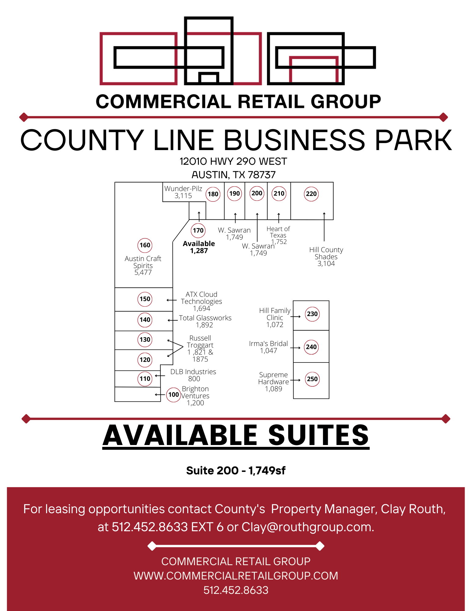 For more information on County Line Business Park email Clay Routh, Property Manager at Clay@Routhgroup.com or 512-452-8633 Ext 6!